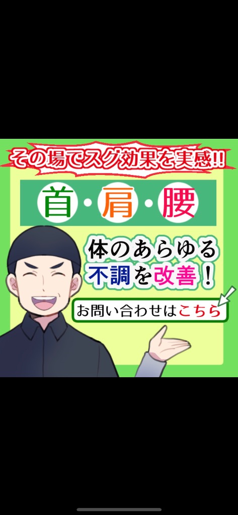 首肩腰の不調、痛みシビレ凝りでお悩みの方は、是非一度お試しください。
