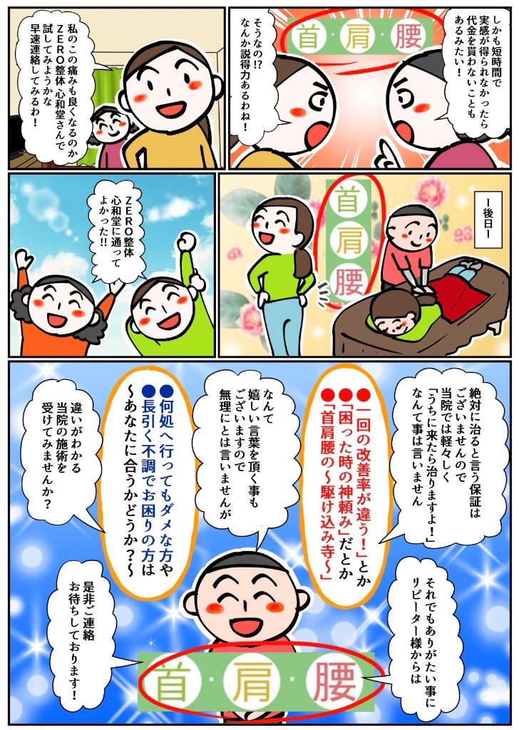 当院〜首肩腰の〜駆け込み寺〜ZERO整体★心和堂について
