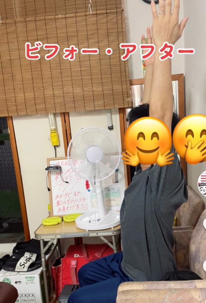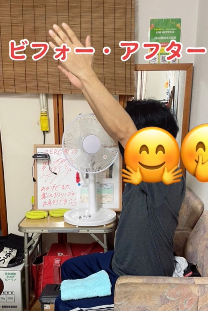 腕肩まわりの痛みは緩和、可動域は写真の様に改善。