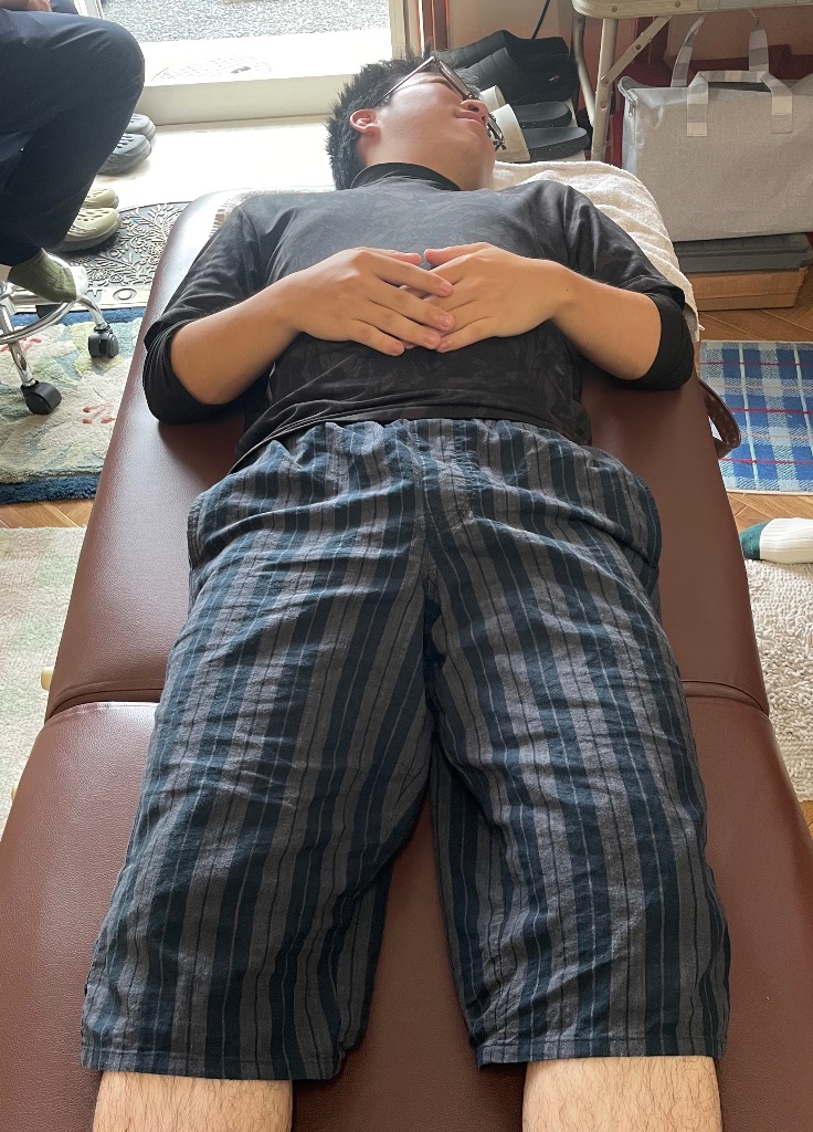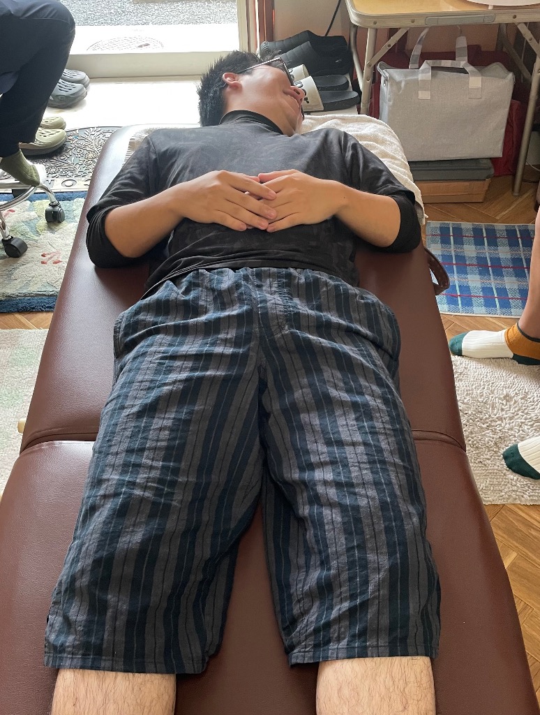 膝を痛めた方は膝だけでしたが、骨盤を痛めた方はベッドに横になる際、腰と首にも痛みがあると訴えられたので、施術を施したら秒で処理出来ちゃいました。